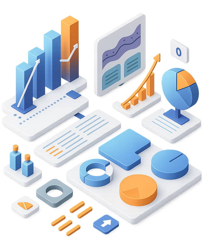نصمّم لك لوحات تفاعلية توضّح كل الأرقام والمعلومات اللي تهمك، مرتبة وسهلة الفهم.
