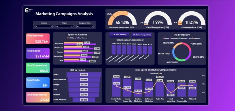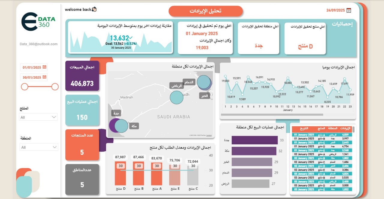 في اي داتا 360 نقدم لكم حلولًا متكاملة لتصميم وتنفيذ دشبوردات احترافية باستخدام Excel و Power BI التى تساعدك في متابعة المشاريع و إدارة المهام وتحليل المبيعات بفعالية.