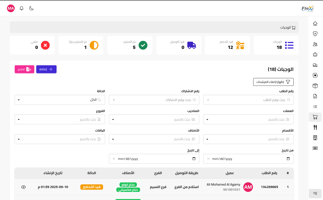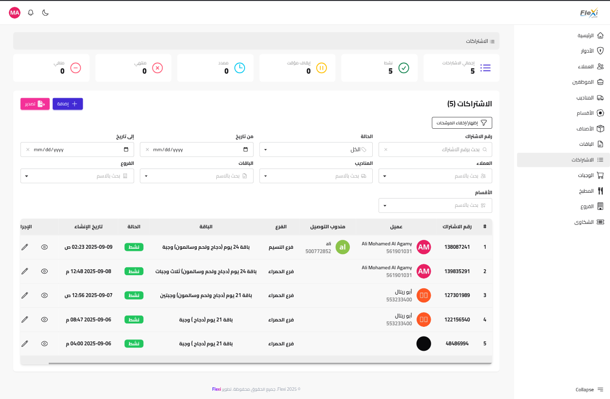 Flexi منصة SaaS للمطاعم ومراكز الأغذية الصحية لإدارة اشتراكات الوجبات بشكل منظم وسلس. بتوحّد كل العمليات: من الباقات والطلبات والرصيد اللوجستي لحد بوابة العميل ولوحة المطبخ. الهدف تحسين التشغيل، تقليل الهدر، ورفع ولاء العملاء وكفاءة الإيرادات.