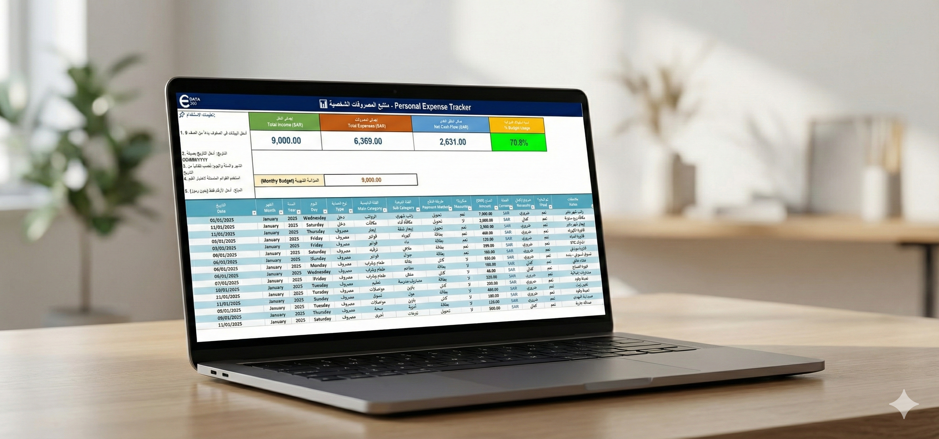 ملف متابعة المصاريف الشخصية من إكسلاتك مصمم لكل شخص دخله زين، لكن يحس إن الفلوس تخلص بدون ما يعرف السبب.